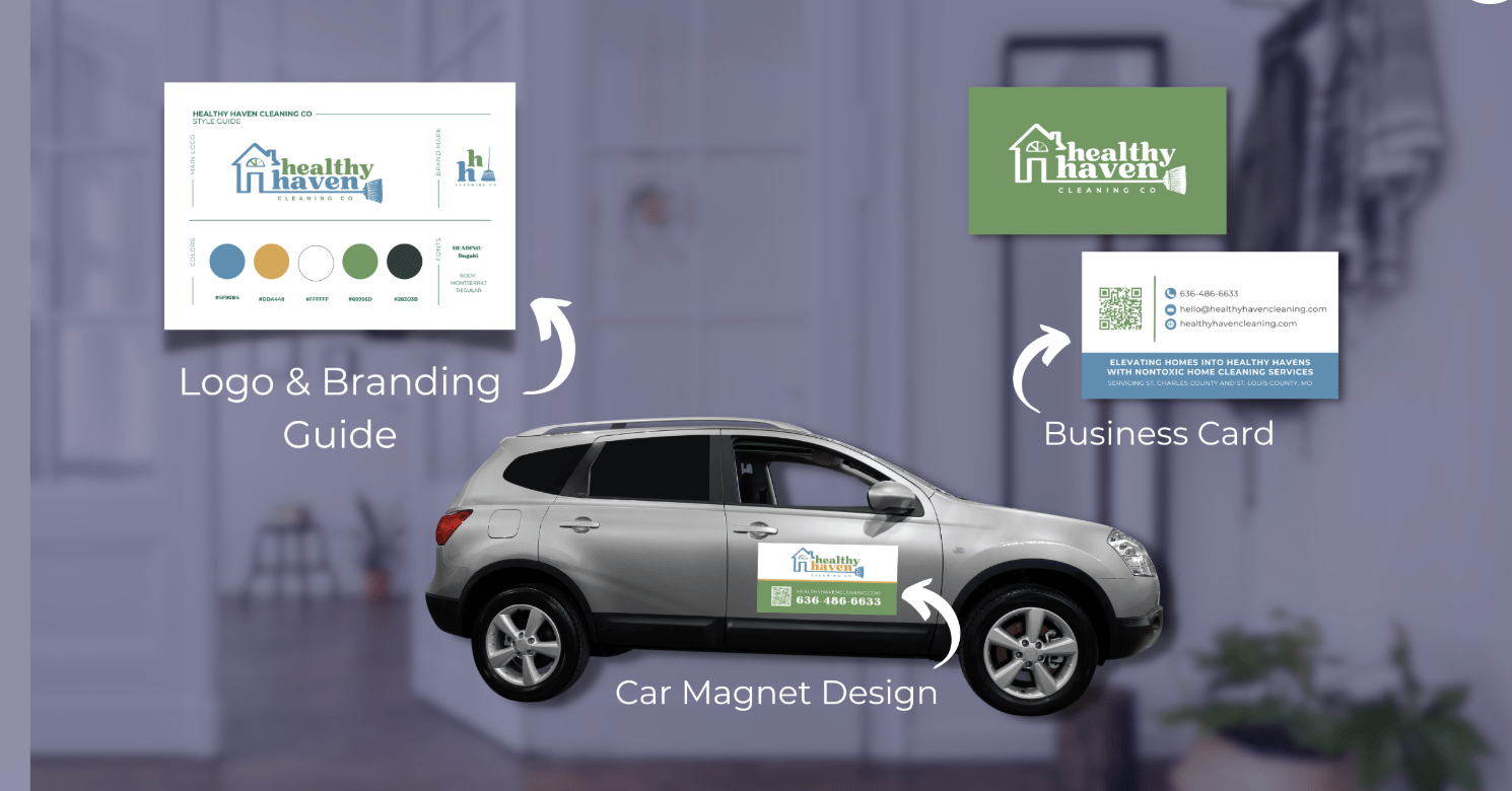 We designed a full brand and website for a residential cleaning business, including logo, WordPress site, and marketing materials. The goal was to create a clean, trustworthy look that appeals to busy homeowners. Deliverables included a mobile-optimized website, Google Local Business setup and optimization, brand style guide, social media graphics, business cards, uniform design, and a car magnet—giving the client a polished, professional presence both online and offline.